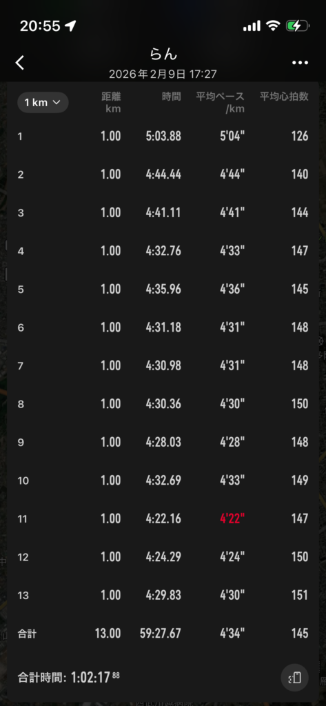 タイムやペースを見ると、いやーーー現役の時はよくあんなに走れたなって思うばかりですわ